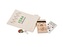 Zabaleno v kartonové krabičce vystlané dřevěnou vatou, vše opatřené papírovou šerpou proti otevření.