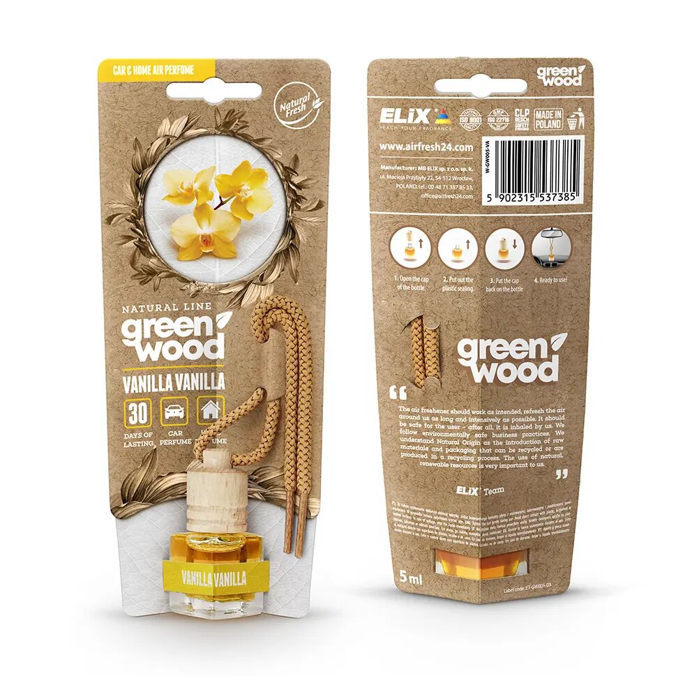 GREEN WOOD - Osvěžovač vzduchu s dřevěným víčkem Vanilla