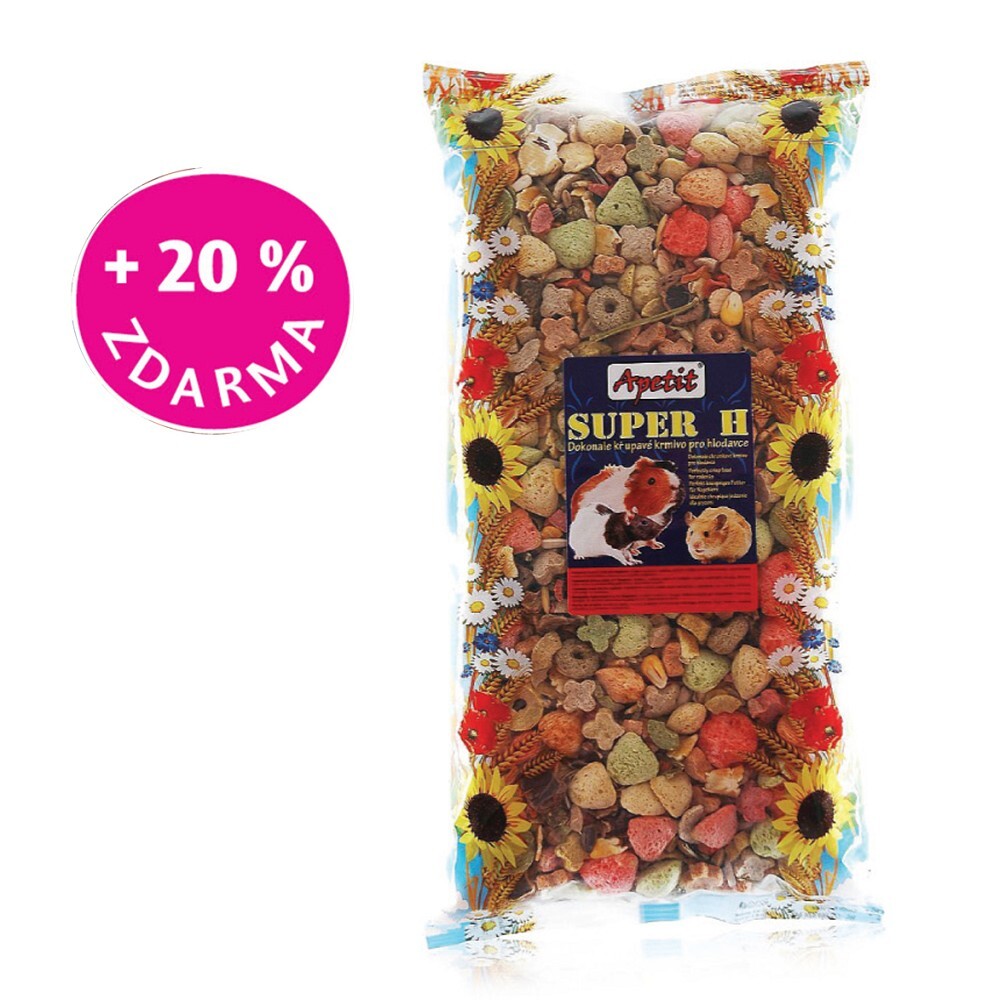 APETIT SUPER H - výběrové krmivo pro všechny druhy hlodavců doplněné o rozmanité křupavé extrudované obilniny.Složení: extrudované obilniny Apetit, vojtěška, kukuřičné vločky, hrachové vločky, maize la plata, green been dark, carrot disk, sojové vločky, rice disk, svatojánský chléb, oves,...