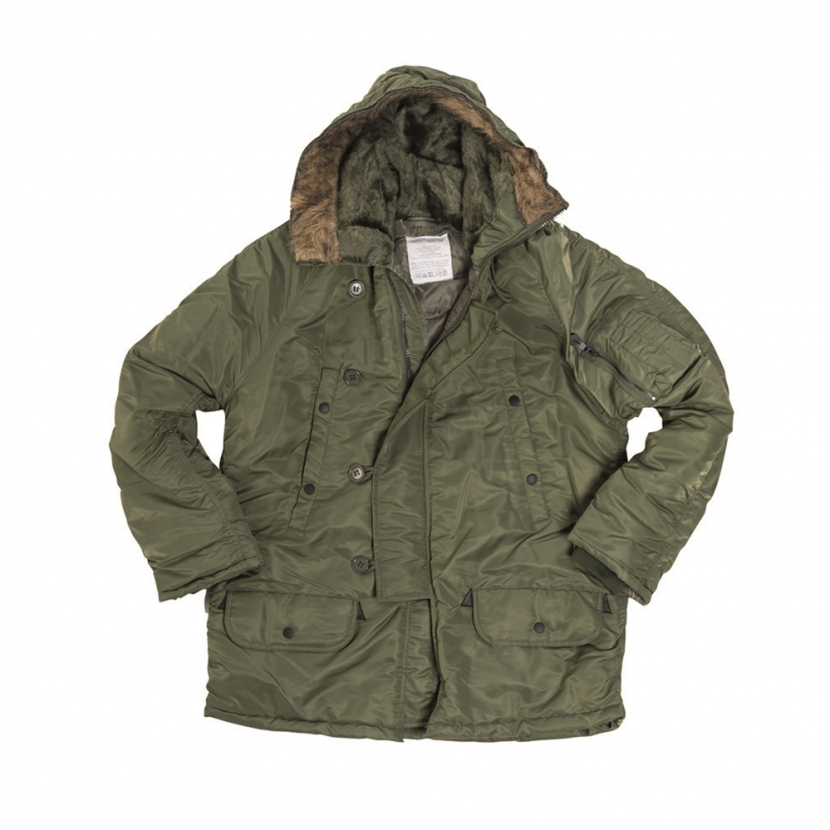 Kvalitní reprodukce legendární letecké bundy US N3B známé pod názvem "Aljaška".Zateplená - s všitou podšívkou - bunda je vhodná i do velmi chladného počasí.Vlastnosti:• na rukávech a na spodním lemu bundy náplet• zapínání je na pevný, kovový zip krytý légou s knoflíky• velká kapuce s teplým a příjemným kožíškem (syntetický)• kapuce je rozepínací (zip) - lze ji rozložit na ramena jako velký límec• 2 náprsní kapsy• 2 velké kapsy na ruce• ...