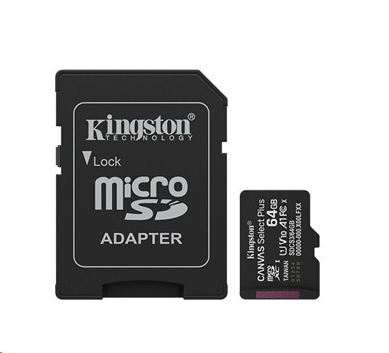 Kingston paměťová karta 64GB Canvas Select Plus Gen 3 microSDXC 150R A1 C10 Card + ADP