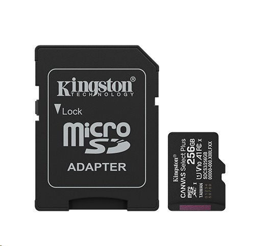 Kingston paměťová karta 256GB Canvas Select Plus Gen 3 microSDXC 150R A1 C10 Card + ADP