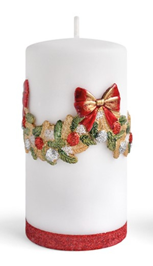 Świeca GIRLANDA Aplikacja walec mały 7xh10cm biały
