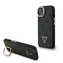 Guess PU 4G Strass Triangle Logo Stand Camera Frame MagSafe Zadní Kryt pro iPhone 14 Black