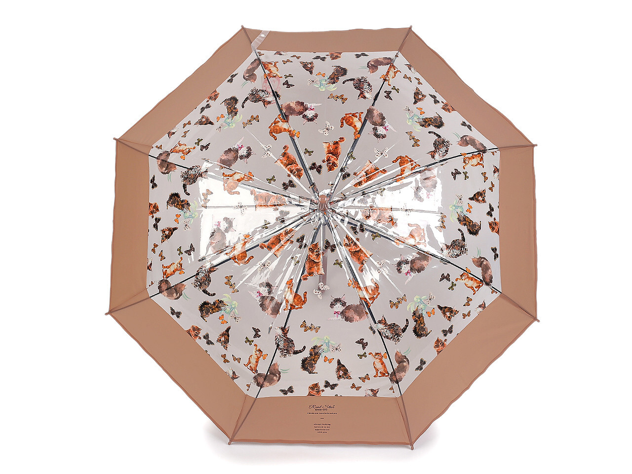 Dámský / dívčí průhledný vystřelovací deštník kočky - 1 ks - 2 béžová