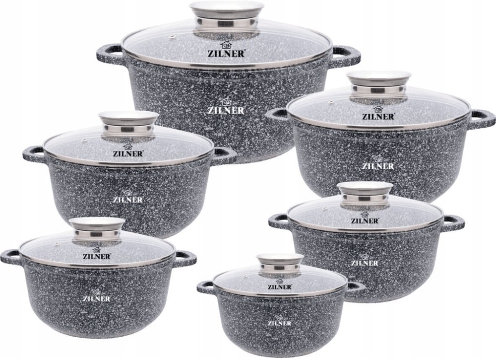 Sada hrnců s keramicko-mramorovým povrchem a poklicemi, 12 dílná