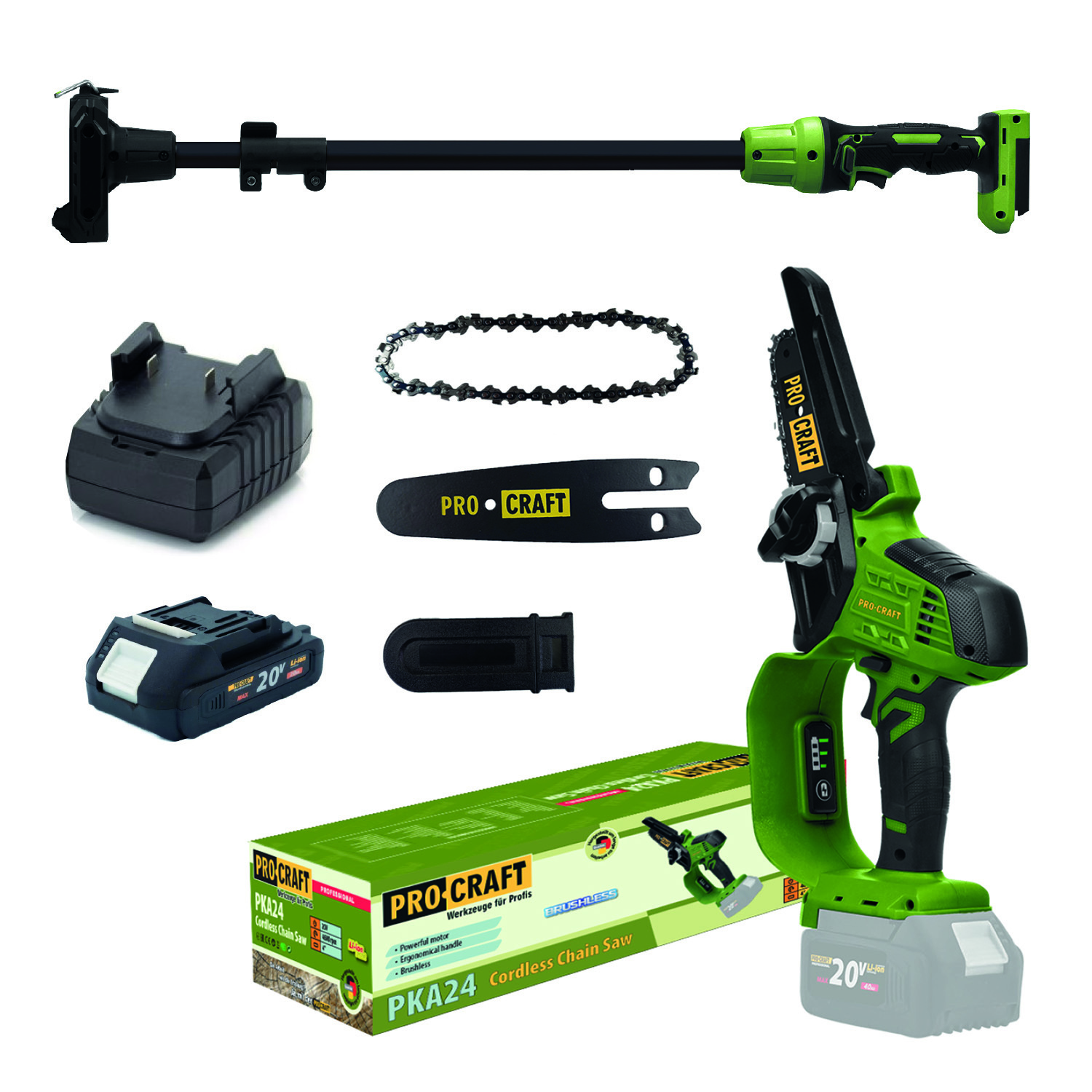 Aku řetězová pila PKA24 a prodlužovací nástavec sada s baterií 20V 2Ah a nabíječkou | SPKA24/20-1/20-2A/PPKA24