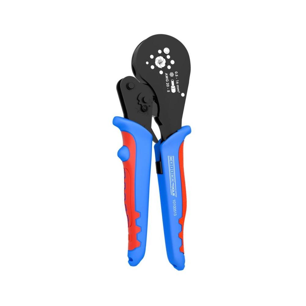 Popispřesná práce díky ráčnovému mechanismu s blokovacím zařízením I procesně bezpečné krimpování - nástroj se otevře až po krimpování I nouzové uvolnění v rukojeti (v případě nesprávného použití) I šestihranný krimpovací otvor usnadňuje zasunutí do kulatých svorek I pracovní rozsah od 0,5-16 mm²...