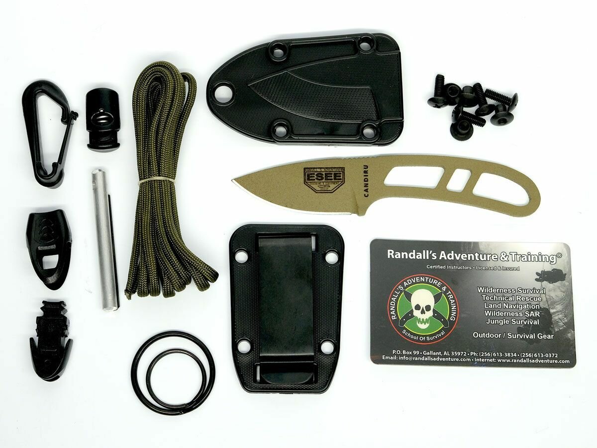 ESEE CAN-DE-KIT-E Dark Earth Candiru malý nôž na krk 5 cm, tmavohnedá, puzdro, súprava na prežitie