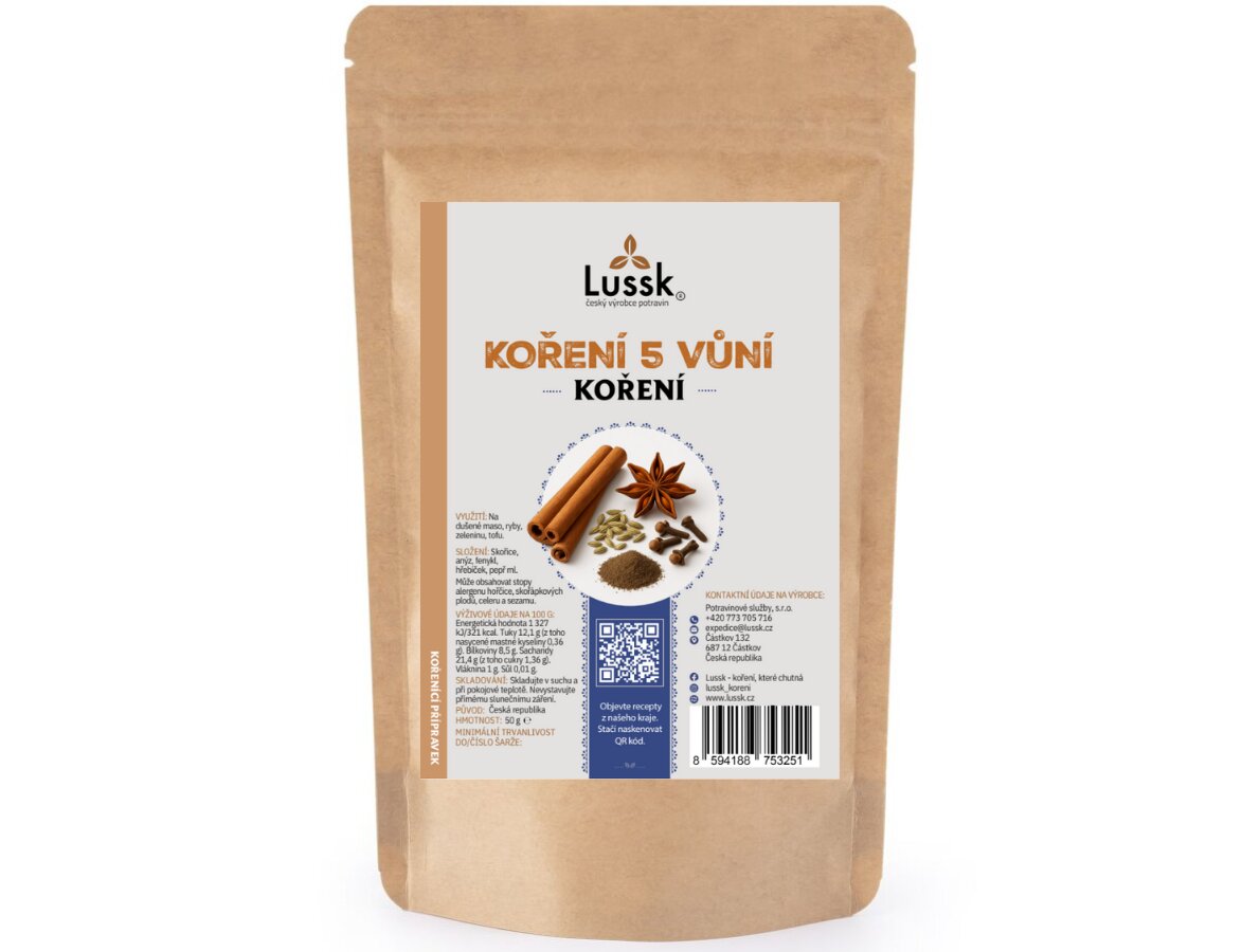 Koření 5 vůní – orientální chuťový zážitekTradiční směs inspirovaná čínskou kuchyní, která propojuje sladkou, kyselou, slanou, hořkou a pikantní chuť v dokonalé rovnováze. Ideální do asijských jídel, na maso, ryby, tofu i zeleninu.Výhody:• Jemně nasládlé aroma s exotickým nádechem• Skvělé pro...