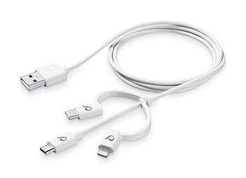 Cellularline USB kabel se třemi adaptéry Lightning + Micro USB + USB-C, bílý