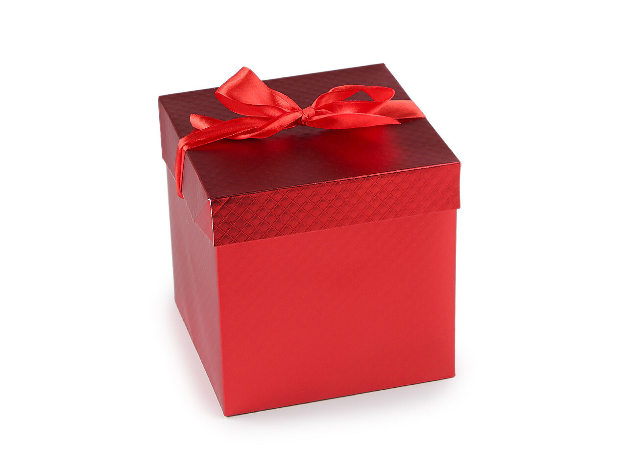 Dárková krabička s mašlí metalická - 1 ks - 3 červená