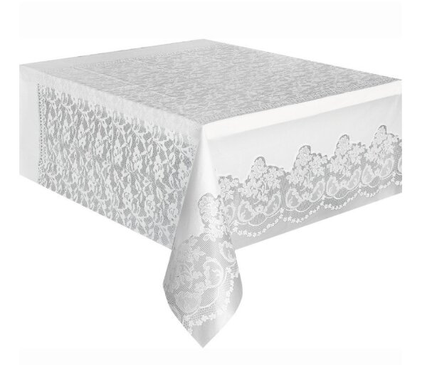 Materiál: Plast (PE)Rozměry: 137 × 274 cm (54" × 108")Barva: Bílá s krajkovým vzoremBalení: 1 ks