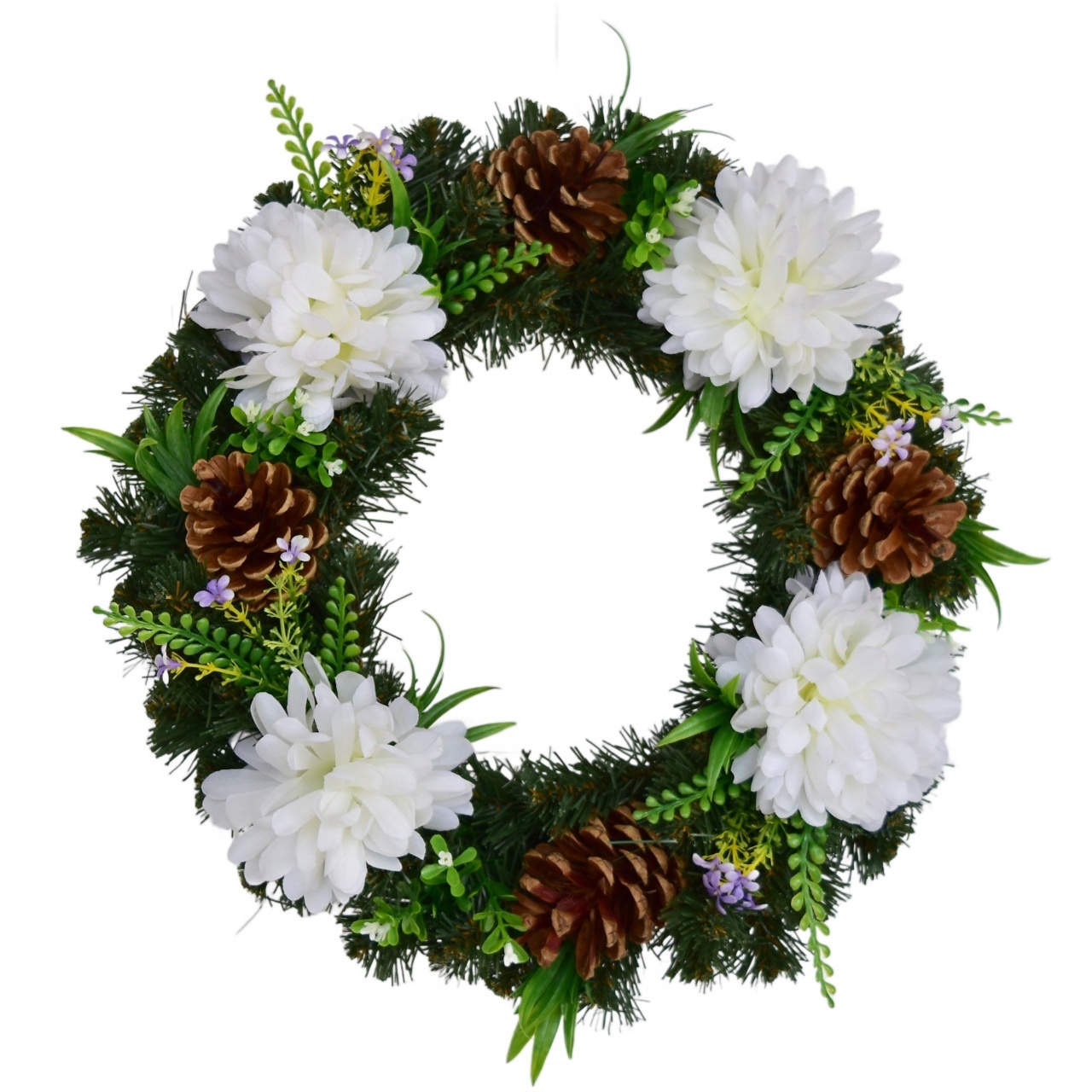 Dušičkový věnec s bílými chryzantémami Ø35 cm