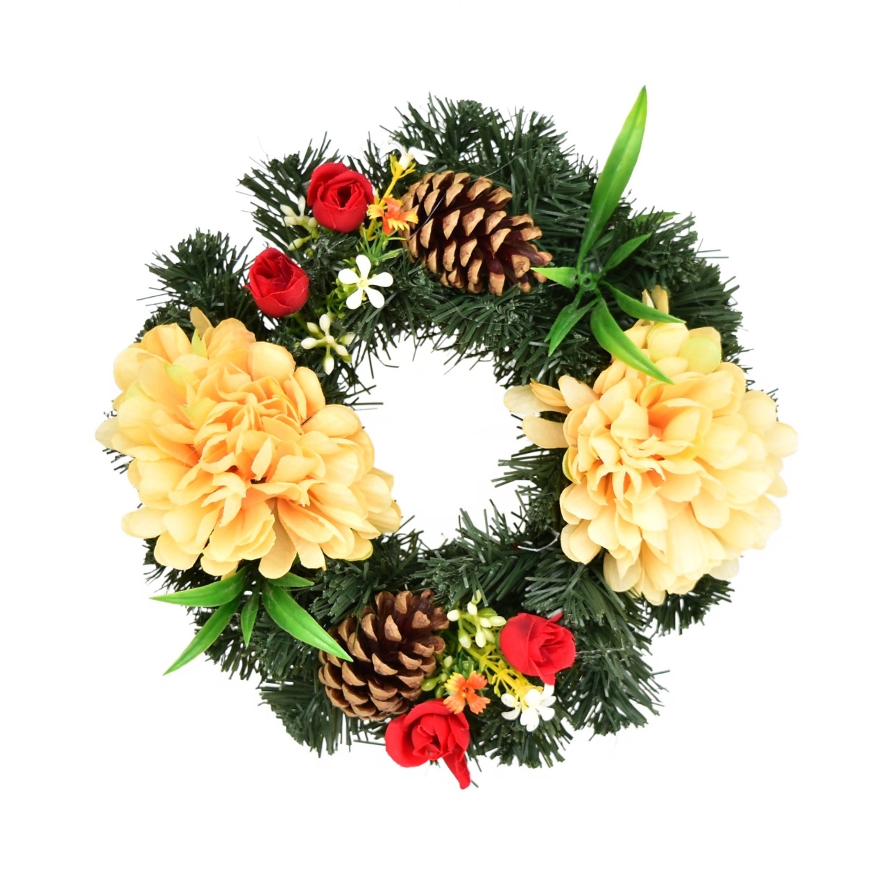 Věneček podzimní se světle oranžovými chryzantémami Ø20 cm