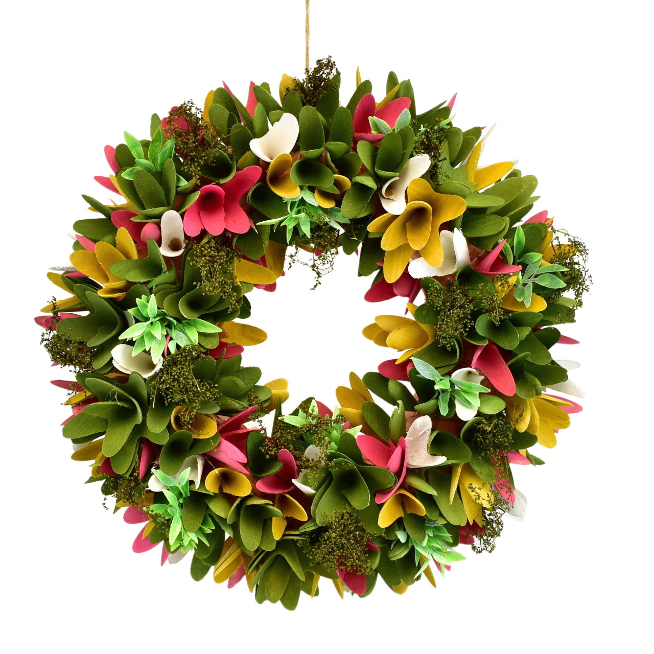 Jarní věnec zdobený Ø30 cm je vkusně vytvořen z dřevěných kalíšků a jemných větviček. Každý detail je pečlivě připevněn na elegantním korpusu, vytvářejícím harmonickou kombinaci přírodního a umělého. Materiál, kterým je tento věnec vyroben, zahrnuje dřevo a plastové komponenty pro zajištění...