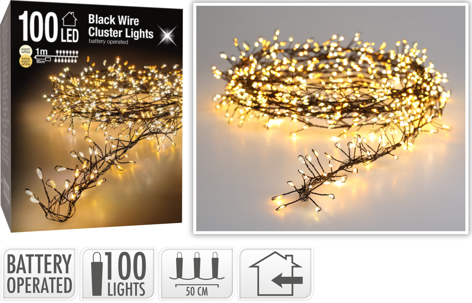 ŁAŃCUCH LED 100L KLASTER WEWNĘTRZNE 100CM NA BATERIE