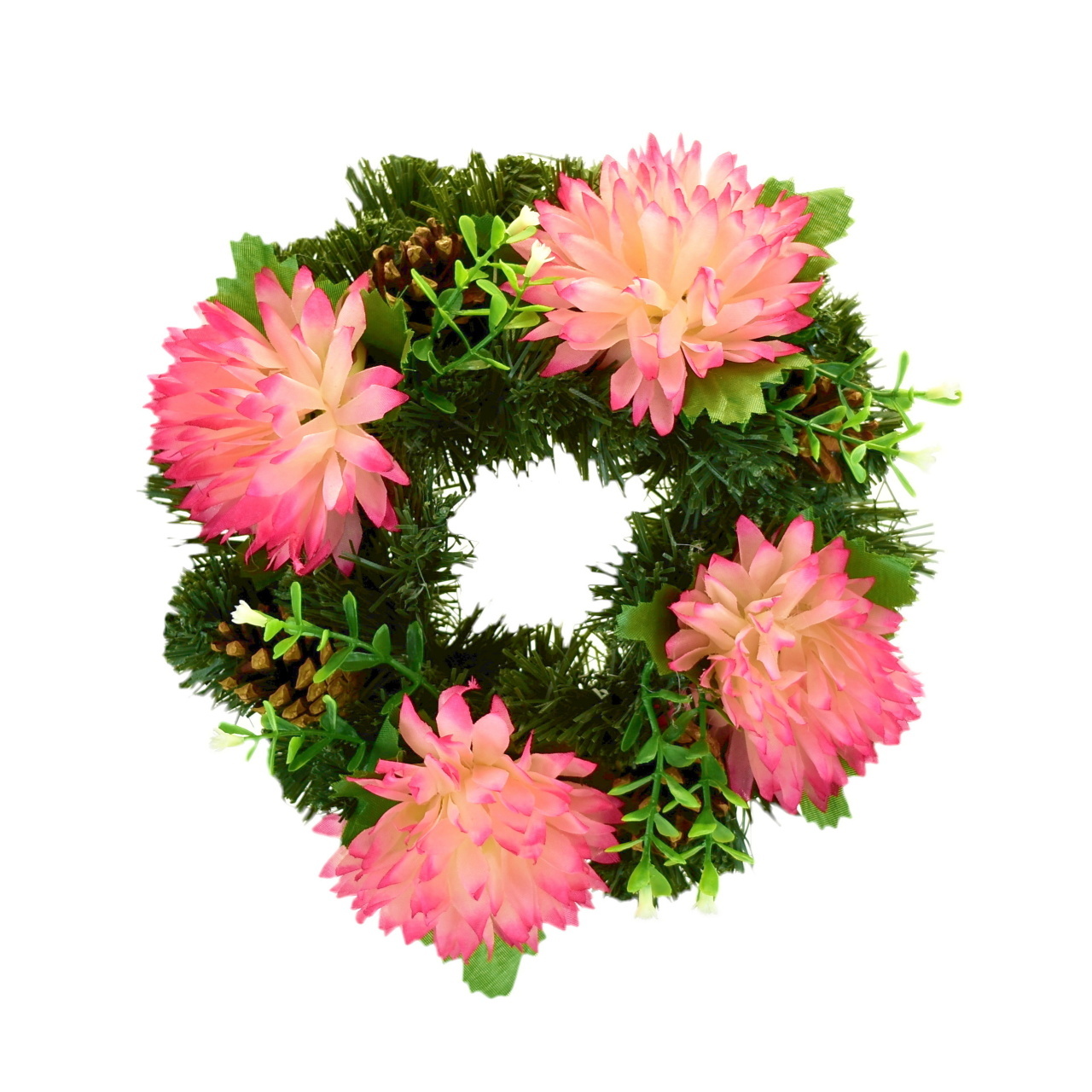 Dušičkový věneček s růžovými chryzantémami Ø20 cm