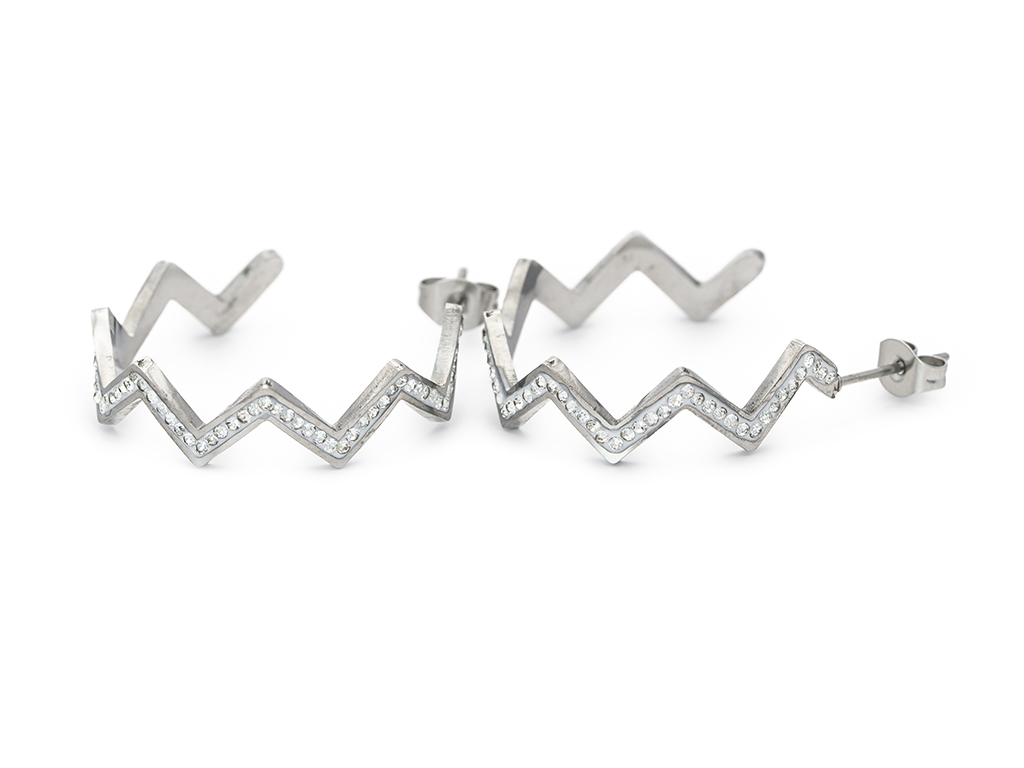 Náušnice CIK-CAK otevřené kroužky s kamínky - chirurgická ocel