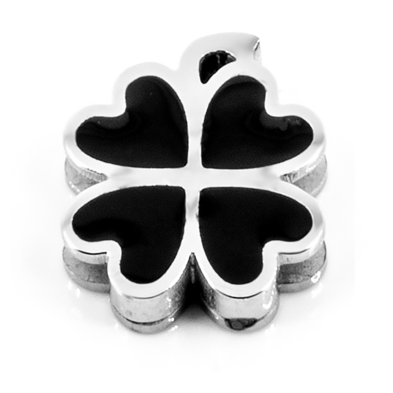 Přívěsek na plochý náramek ČTYŘLÍSTEK ČERNÝ - chirurgická ocel