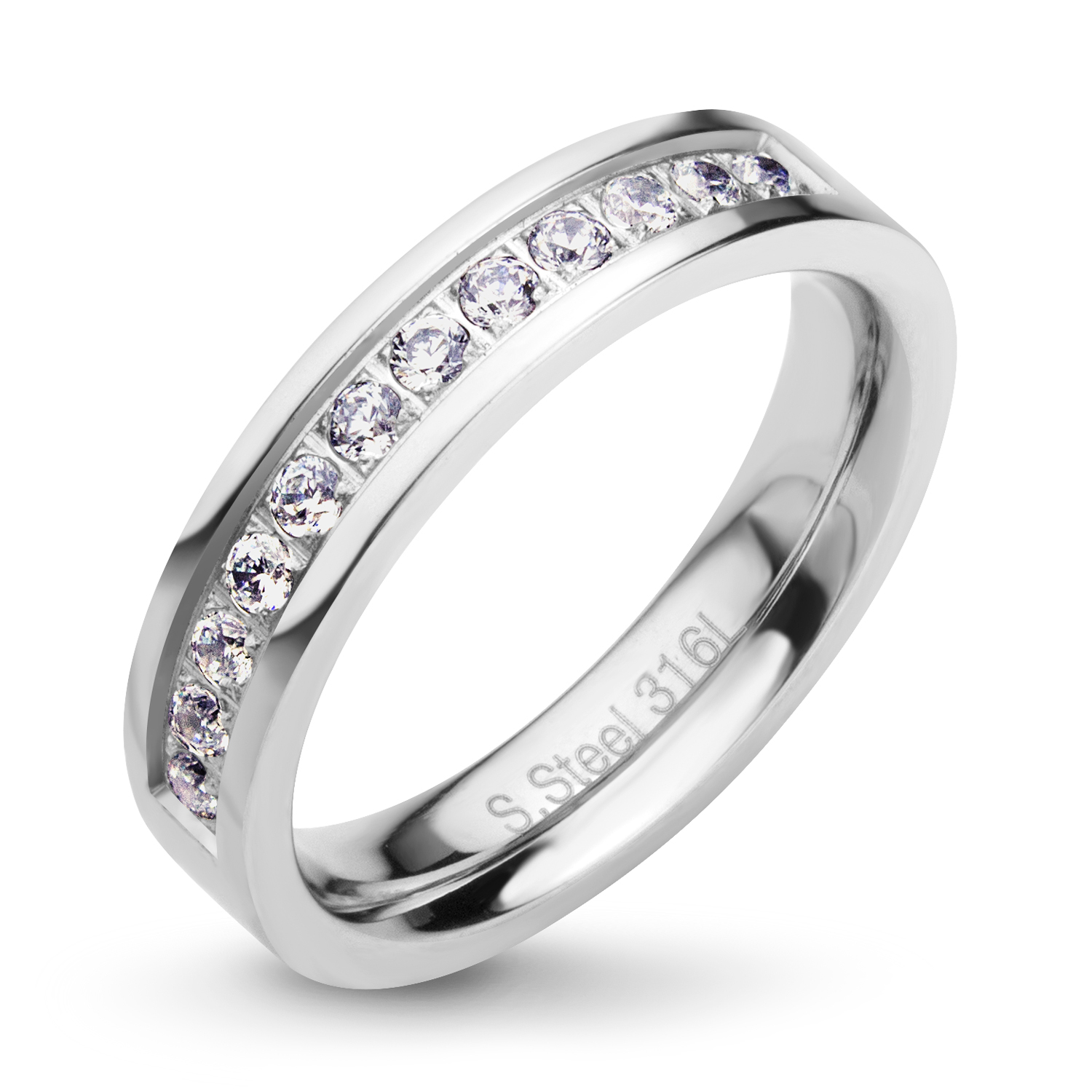 Prsten s kamínky - chirurgická ocel, velikost 8 (EU: 56,5 - 58,5)