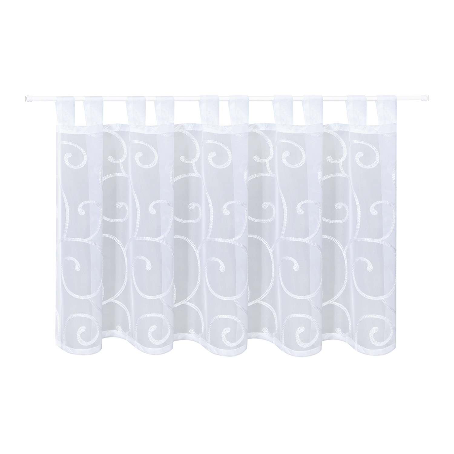 Krátká záclonka s poutky, výšivka - bílá, 50 mm, 150 mm