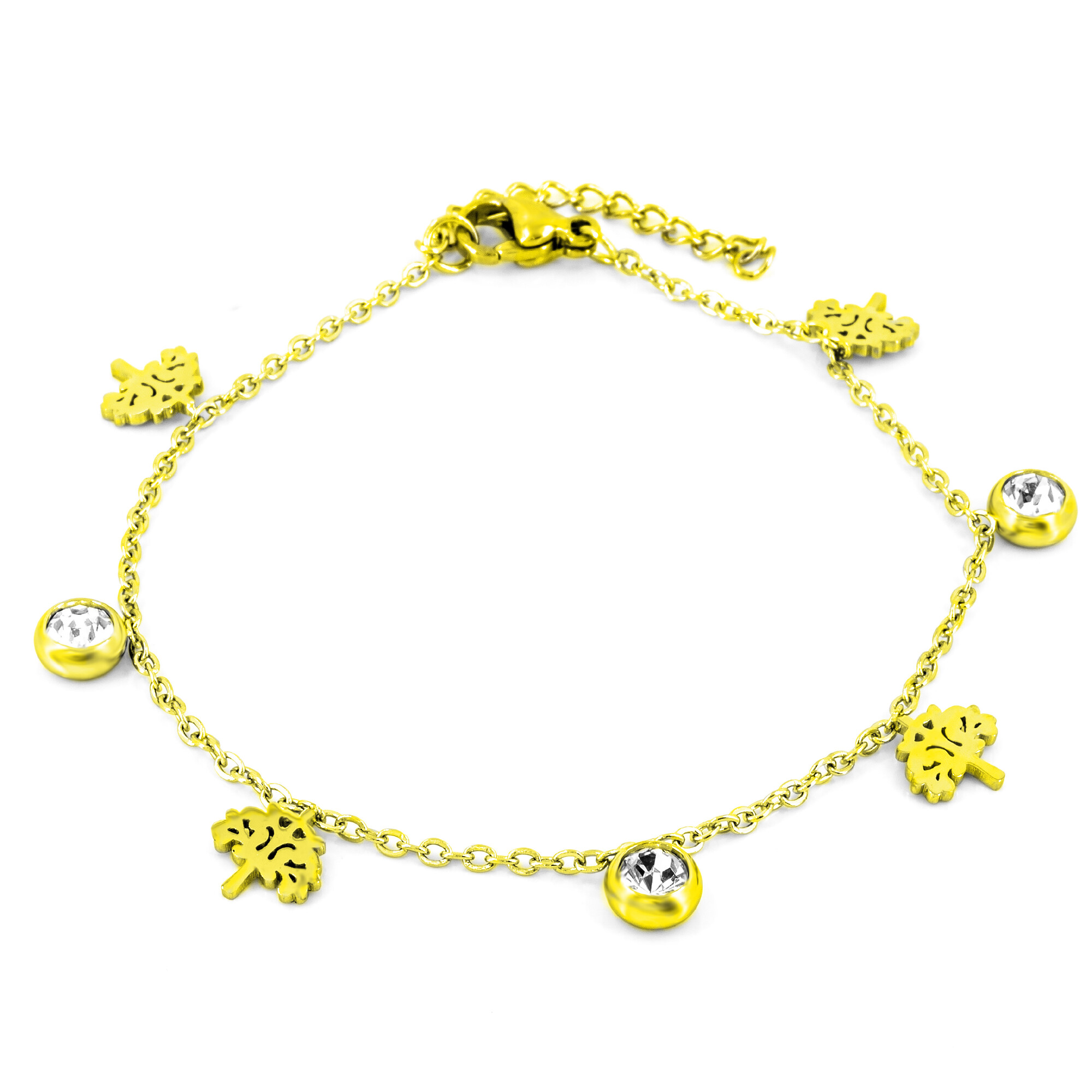Řetízek na nohu STROM ŽIVOTA s kamínky GOLD - chirurgická ocel