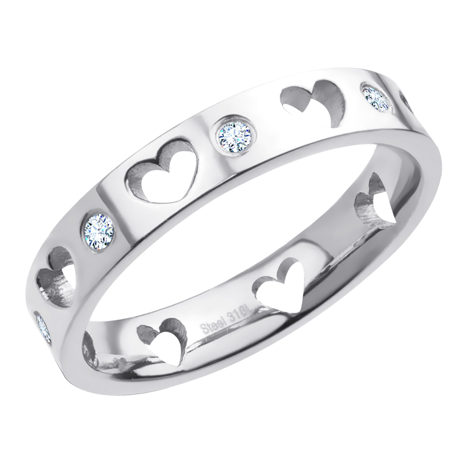 Prsten SRDCE s kamínky - chirurgická ocel, velikost 5 (EU: 49 - 51)