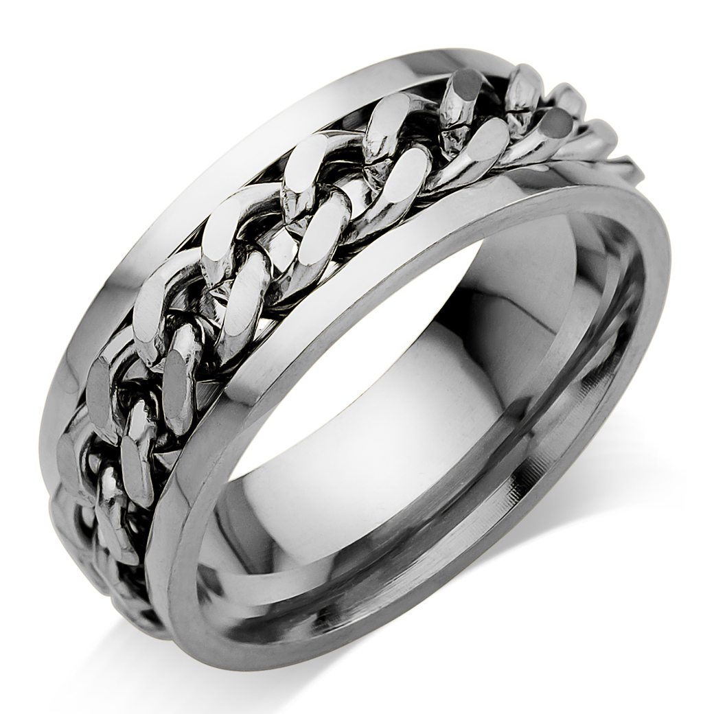 Prsten s pohyblivým řetízkem - chirurgická ocel, velikost 10 (EU: 61,5 - 63,5)