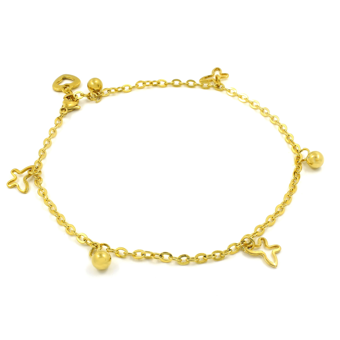 Materiál: chirurgická ocelBarva: zlatáDruh šperku: řetízky na nohuKameny: nePro koho: dámskéSpecifikace: s přívěskyTvar: kuličkyUmístění: nohaZvířecí motiv: motýl prečítať celé