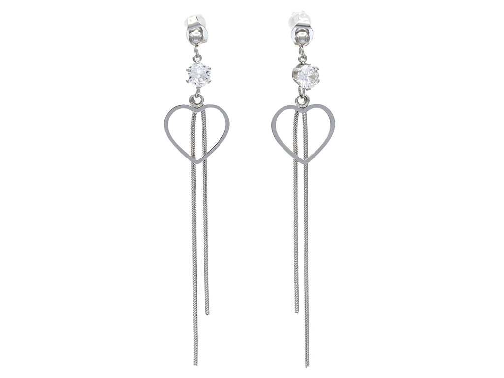 Dlouhé visací náušnice SRDCE s kamínkem - chirurgická ocel