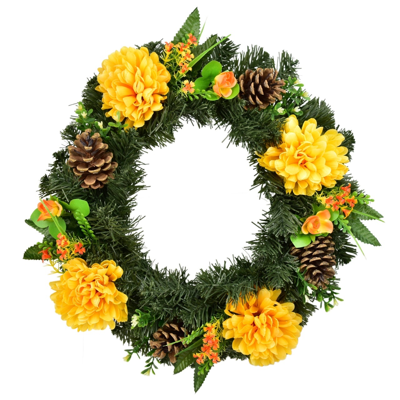 Věnec podzimní se žlutými chryzantémami Ø35 cm