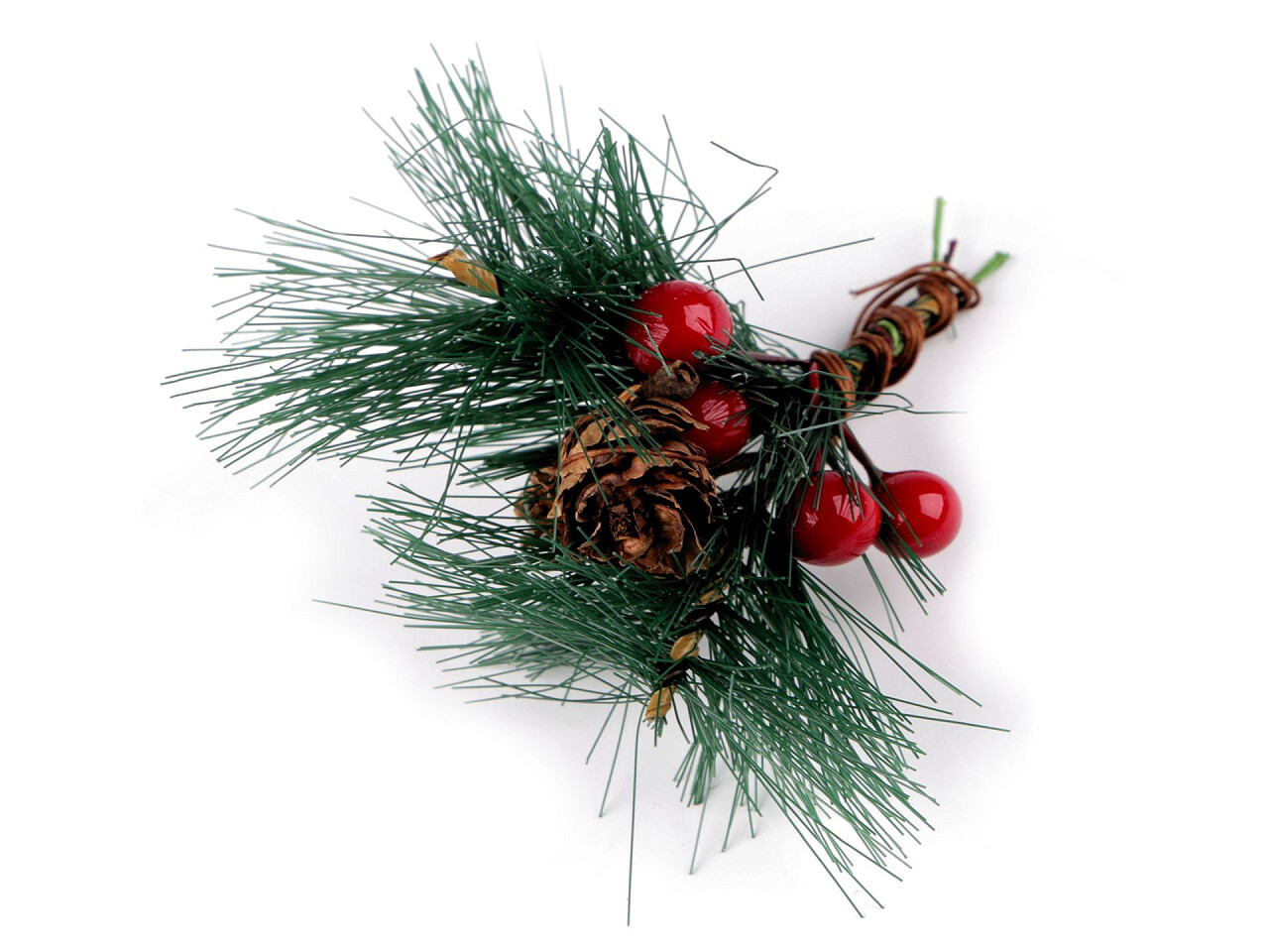 Umělá vánoční větvička na drátku - 3 ks - 1 zelená
