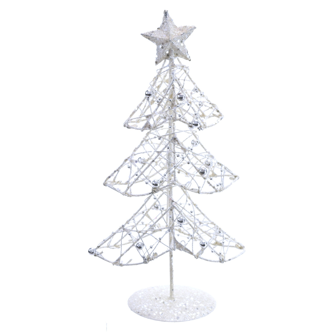 Drátěný stromek s perličkami 30 cm s perličkami a glitrovým posypemParametry produktu:Výška: 30 cmŠířka: 15 cmMateriál: KovBarva: BíláZdobení: Perličky, Glitrový posyp prečítať celé