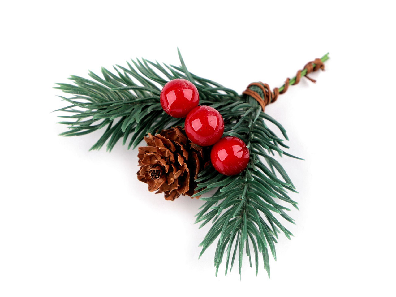 Umělá vánoční větvička na drátku - 3 ks - 2 zelená