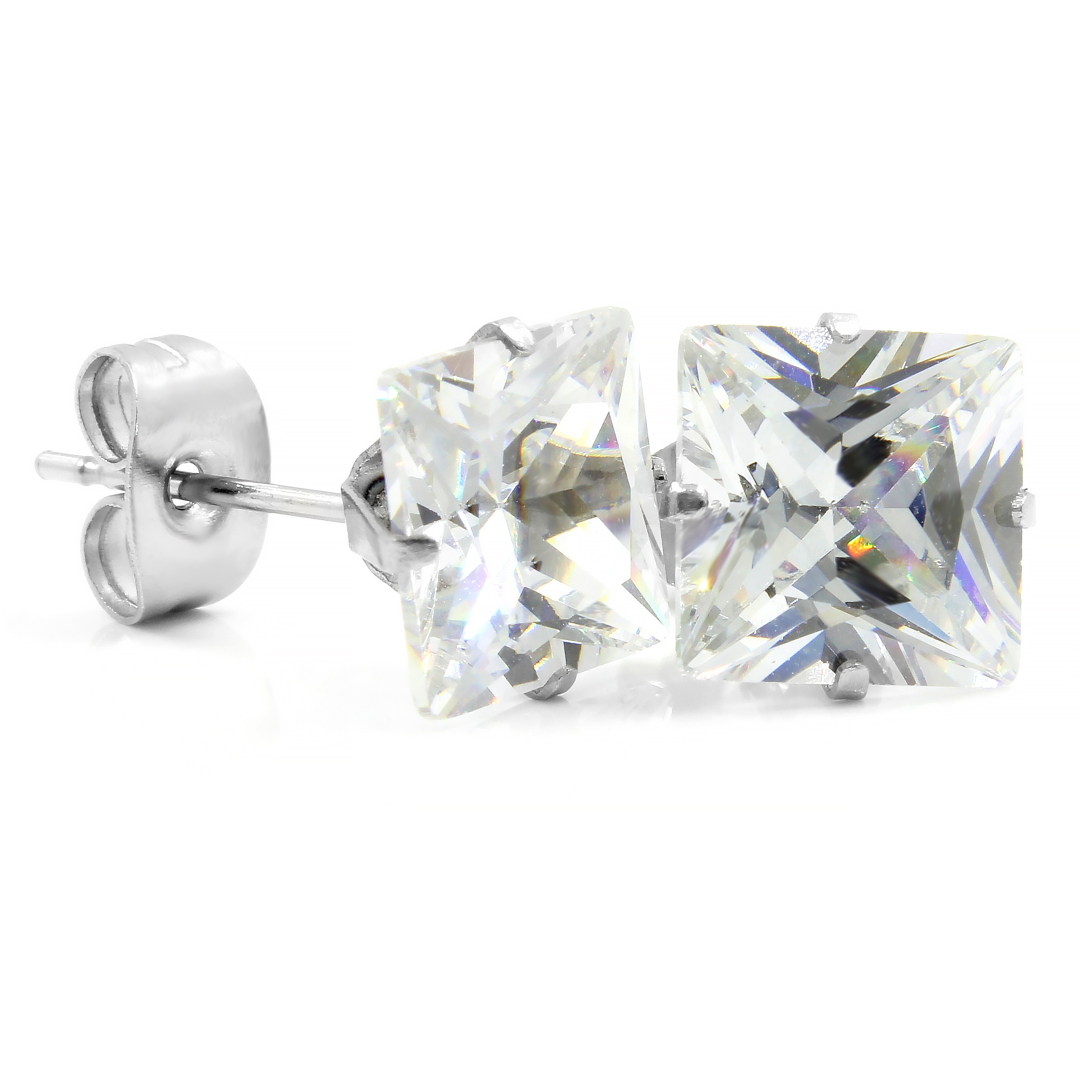 Náušnice ČTVEREČKY s kamínkem 0,8 cm - chirurgická ocel