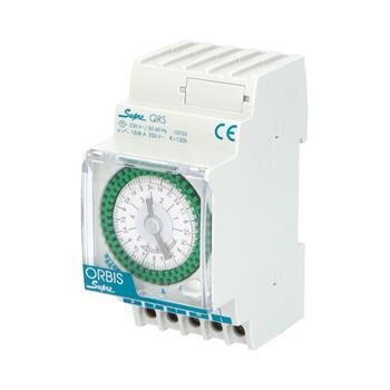 Hodiny spínací SUPRA QRS, analogové, týdenní, šířka 44mm (2,5 mod.), 230V 50-60Hz, se zálohou chodu 150 hodin, na DIN lištu, krytí IP20.Hodiny spínací SUPRA QRS, analogové (mechanické), týdenní program, šířka 44 mm (2,5 mod.), napájecí napětí 230V 50-60Hz, max. spínaný proud 16A, nejkratší...
