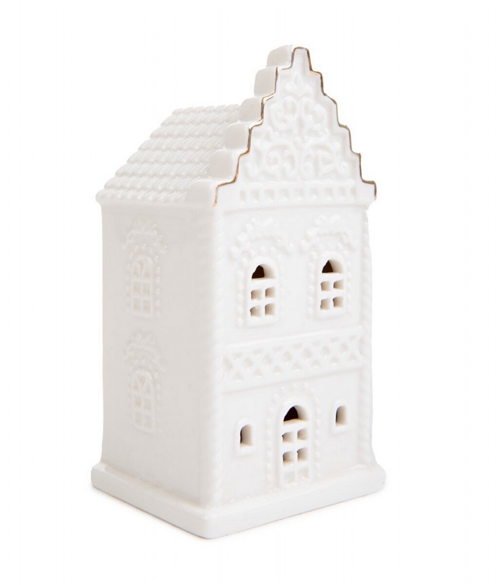 Krásná a odolná keramika - LED osvětlení - Jemná dekorace ve formě zlatých linek - Napájení na baterie (nejsou součástí balení) - Rozměry podstavce: 6,5 x 5,5 cm - Výška: 12 cmKeramický měšťanský dům s LED osvětlenímVánoce jsou kouzelným obdobím, kdy interiéry našich domovů získávají zvláštní...