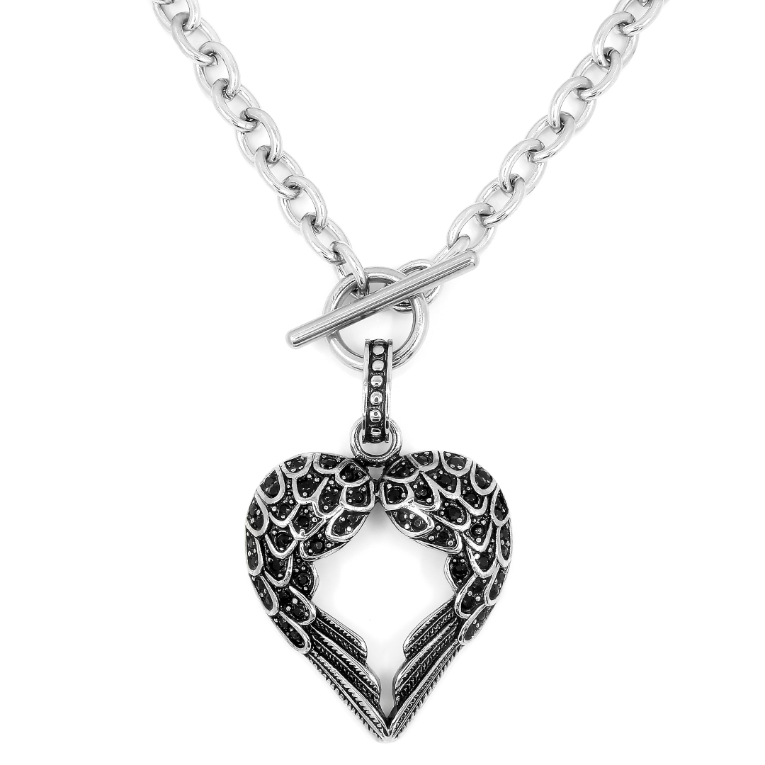Náhrdelník ANDĚLSKÉ SRDCE s kamínky ČERNÝ - chirurgická ocel