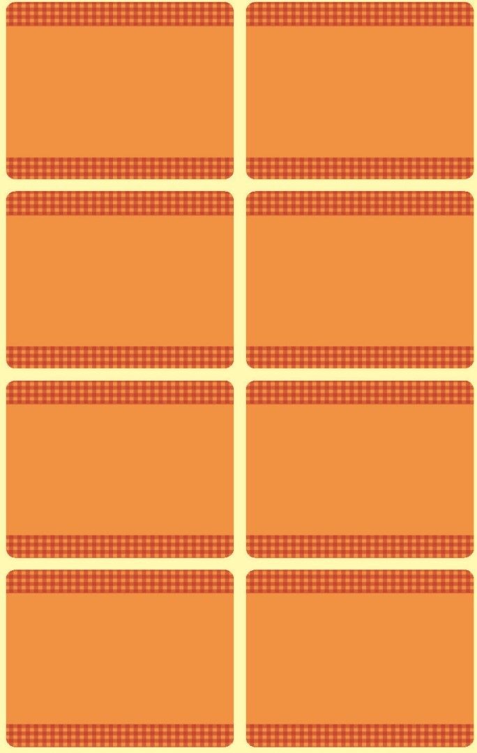 Obsah 1 ks balení: 40 etiket / 5 aršíkůRozměr etikety: 36 x 28 mmTyp tiskárny: ruční popisBarva: oranžováMateriál: mrazuvzdorný papírTvar: obdélník | oblé rohyDruh lepidla: permanentníFormát: 76 x 120 mmCelkem etiket v balení: 40Počet aršíků v balení: 5Udržitelnost - produkt: Made in...