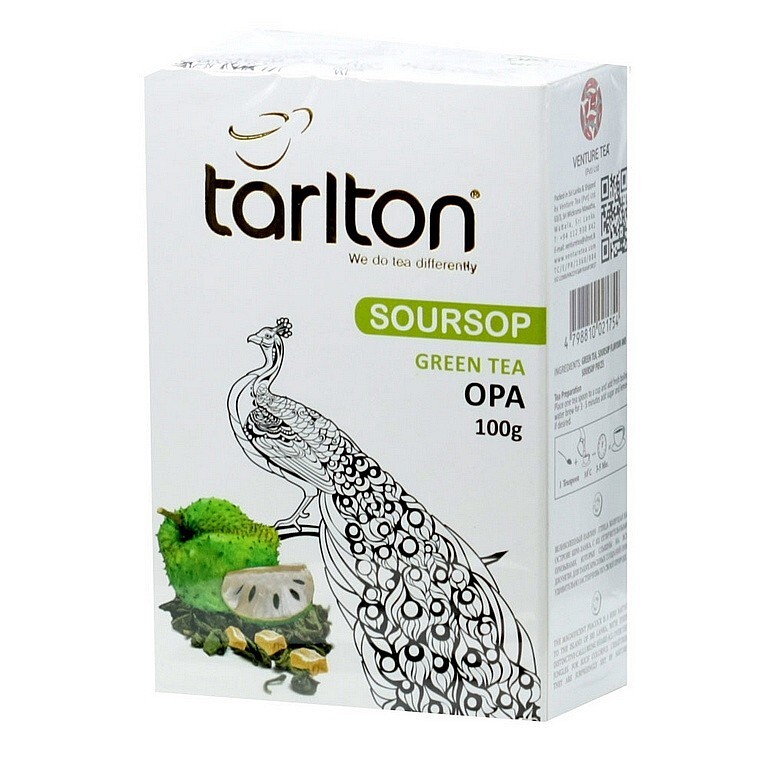 Zelený čaj aromatizovaný s ochucujícími částmi rostlin (kousky ovoce), sypanýSložení: zelený čaj OPA, graviola plod 5 %, aroma (graviola)Hmotnost: 100gNávod na přípravu: 1 lžičku na 250ml šálek, zalít vodou 80°C, louhovat 2-3 minutyVýrobce: Venture Tea (PVT) LTD. Baleno na Srí Lance. Dovozce pro ČR: MIX-TEE velkoobchod, s.r.o., Masarykova 235, 250 88 Čelákovice, Česká republika