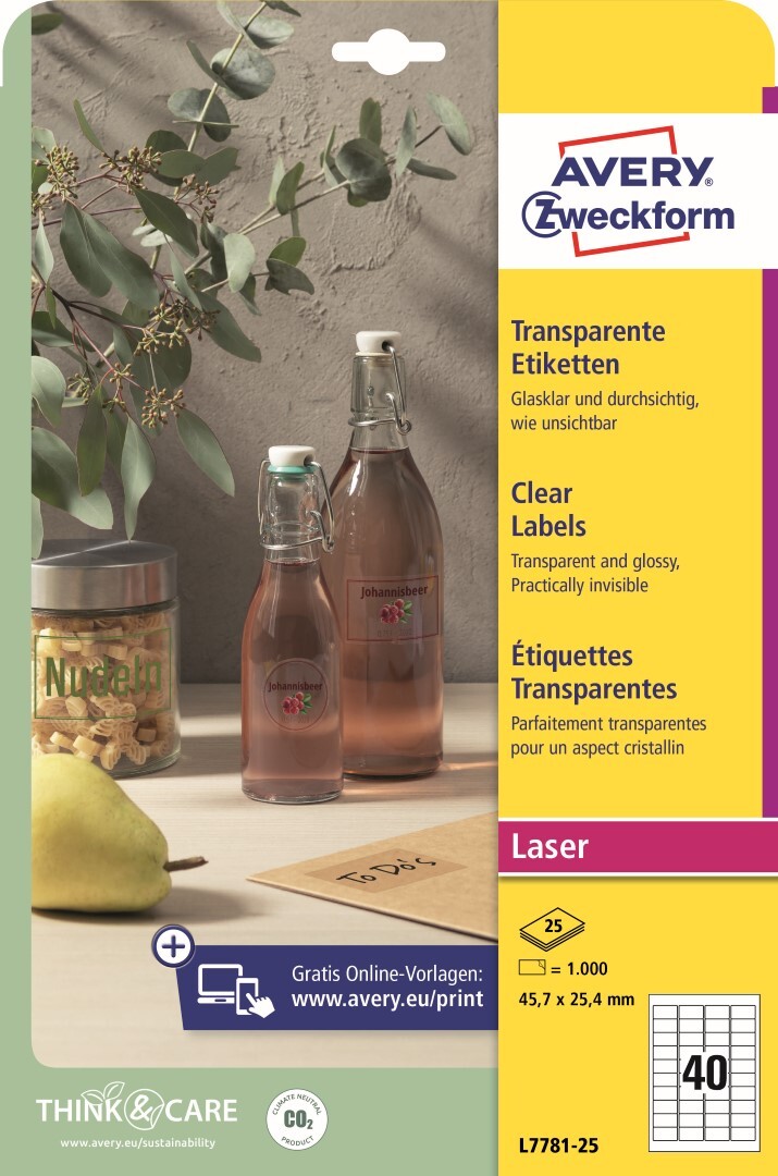Avery Zweckform L7781-25 Čiré etikety 45,7 × 25,4 mm, 1 25 archů A4, lesklá PET fólie