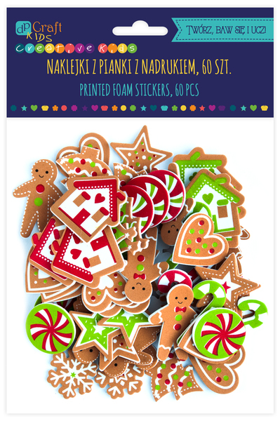 Naklejki z pianki z nadrukiem - pierniczki i cukierki 60szt, DP Craft