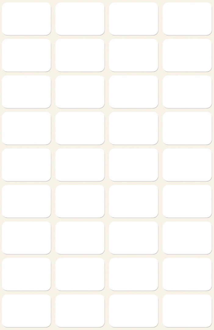 Obsah 1 ks balení: 216 etiket / 6 aršíkůRozměr etikety: 18 x 12 mmTyp tiskárny: ruční popisBarva: bíláMateriál: papírTvar: obdélník | oblé rohyDruh lepidla: permanentníFormát: malé baleníCelkem etiket v balení: 216Udržitelnost - produkt: bez PVCUdržitelnost - produkt: bezchlorové...
