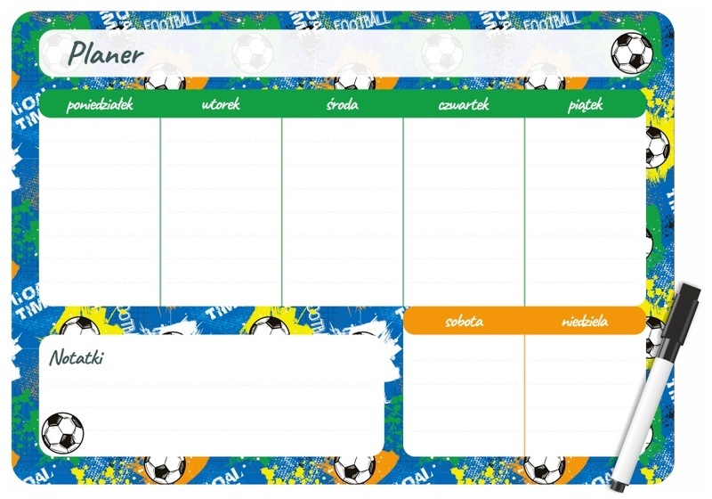 Planer magnetyczny 35x25 tygodniowy football + marker kod: PM-02-34 - planer na lodówkę z motywem z Kolekcji nadruków - wyposażony w magnetyczny podkład, dzięki któremu można umieścić go na lodówce, jak i każdej innej powierzchni metalowej - układ tygodniowy znacznie ułatwi zaplanowanie...