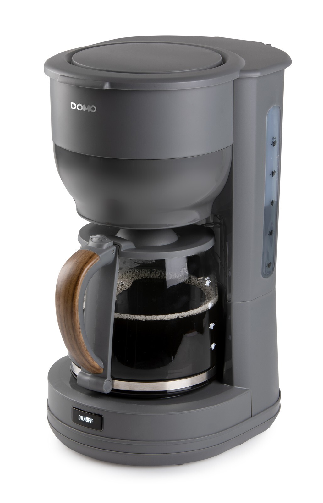 Překapávač na kávu WOOD YOU - šedý - DOMO DO754K, Objem: 1,25 l, Kapacita: 10 šálků, Příkon: 1 000 W, automatické vypnutí