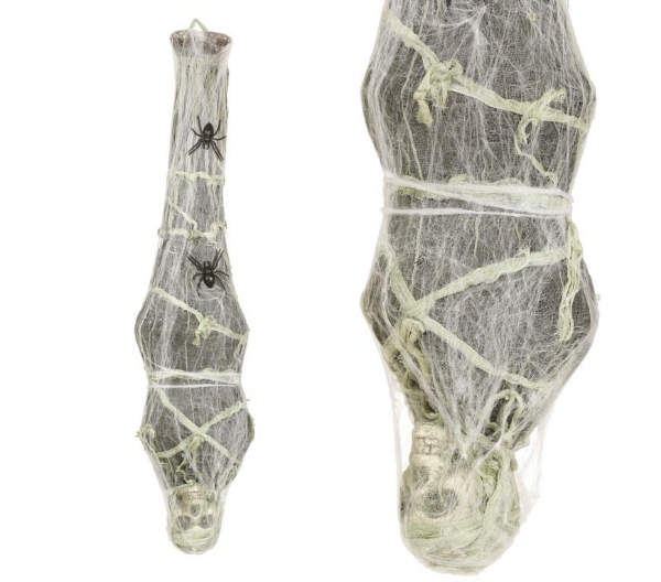 Visící kostlivec zabalený v husté pavučině je perfektní doplněk pro vytvoření mrazivé halloweenské dekorace. Díky délce 120 cm se stane nepřehlédnutelným prvkem každé strašidelné scény a navodí dojem, že se u vás uhnízdil obří pavouk. Tento visící prvek působí velmi realisticky a dodá vašemu...