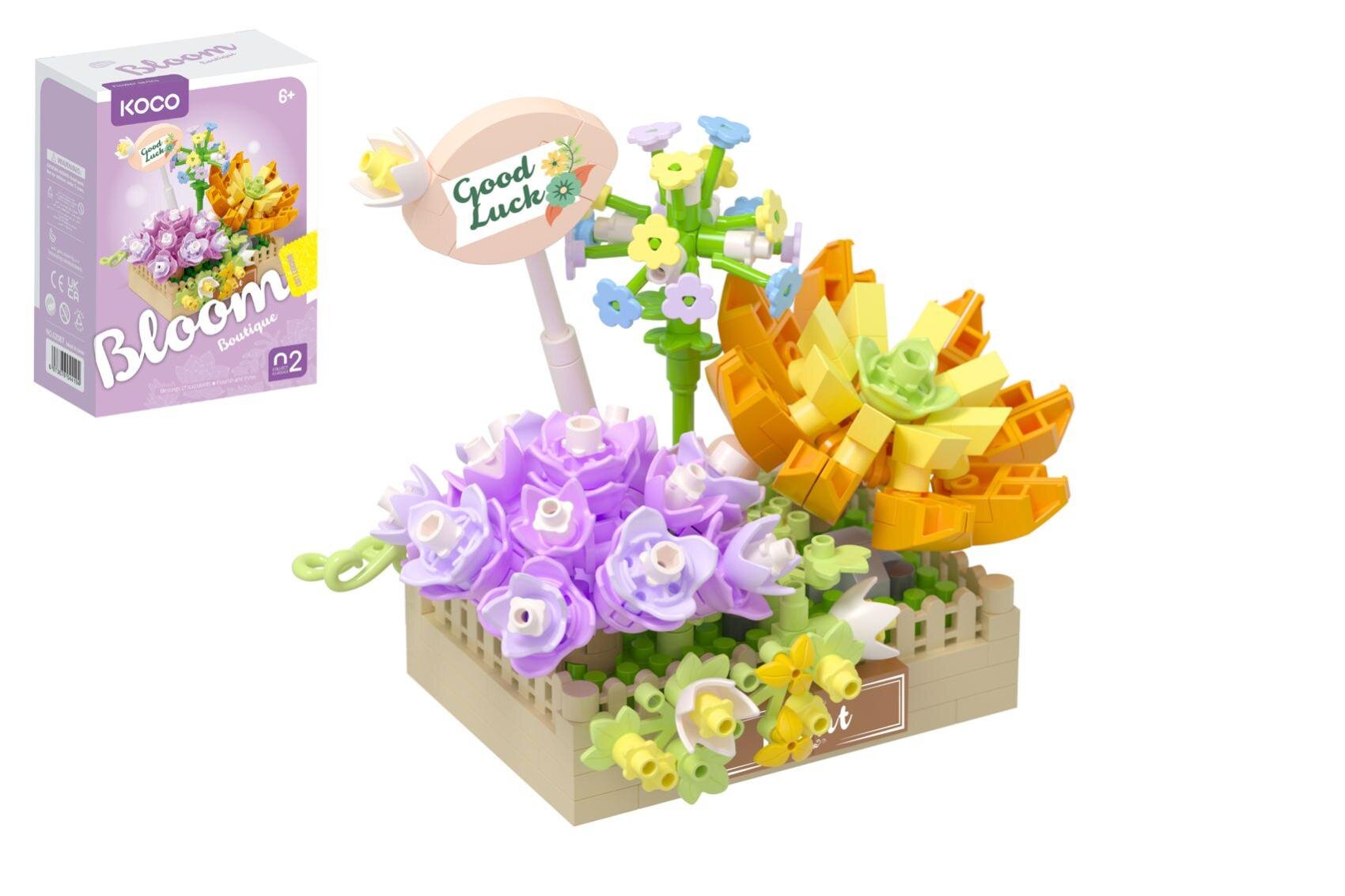 Stavebnice mini KOCO Květinové aranžmá sukulentů plast 295 dílků v krabičce 11x15x6cm