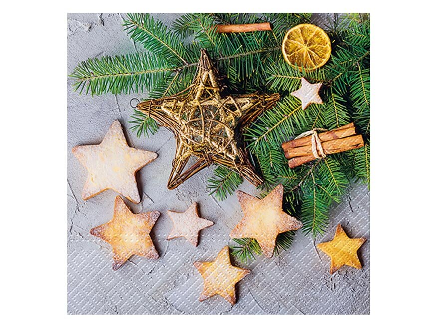 Vánoční ubrousek s motivem proutěné hvězdy a vánočního cukrovíDodejte svátečnímu stolování jedinečný šmrnc s elegantním vánočním ubrouskem zdobeným proutěnou hvězdou, vánočním cukrovím, skořicí a sušeným pomerančem. Jemný šedý podklad nechává krásně vyniknout přírodní dekorace a navozuje hřejivou...
