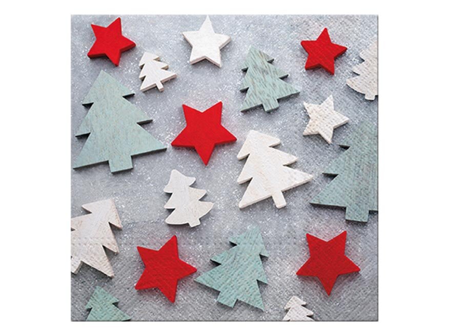 Vánoční ubrousek se stromky a hvězdičkamiOriginální ubrousek s motivem barevných stromečků a hvězdiček přinese na váš stůl hravou, ale zároveň stylovou atmosféru. Kombinace červené, bílé a zelenošedé barvy působí moderně a hodí se jak k tradičním, tak i k minimalistickým dekoracím.Třívrstvé...